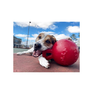Get ready for a game of fetch by lobbing the Tug–n–Toss ™ away from your dog! This toy requires no inflation as it floats through the air and darts wildly around the ground upon impact. Constructed of our signature JollyFlex ™ material, The Tug and Toss ™ will not deflate, even if punctured by your pup! The handle makes it easy to retrieve the toy from the jaws of a prideful pooch that won't let go.