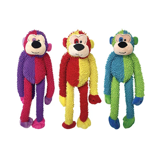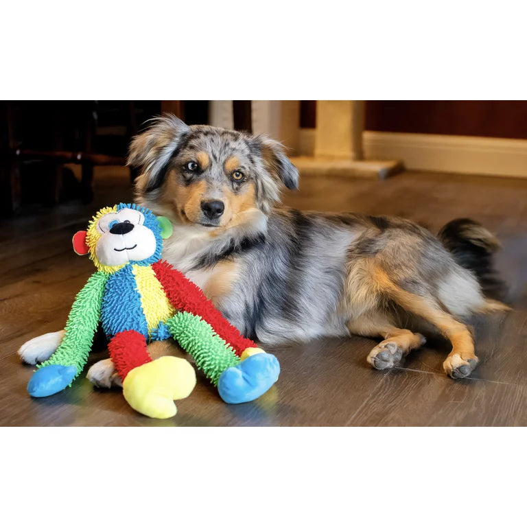Looking for a new batch of interactive dog toys your pooch will love? This Multipet Multi-Crew Monkey is a cute, brightly colored dog toy is perfect for tug of war with its long arms and legs. Our Multi-Crew Monkeys have 'crew-cut' hair and squeak. These dog chew toys are available in assorted colors.