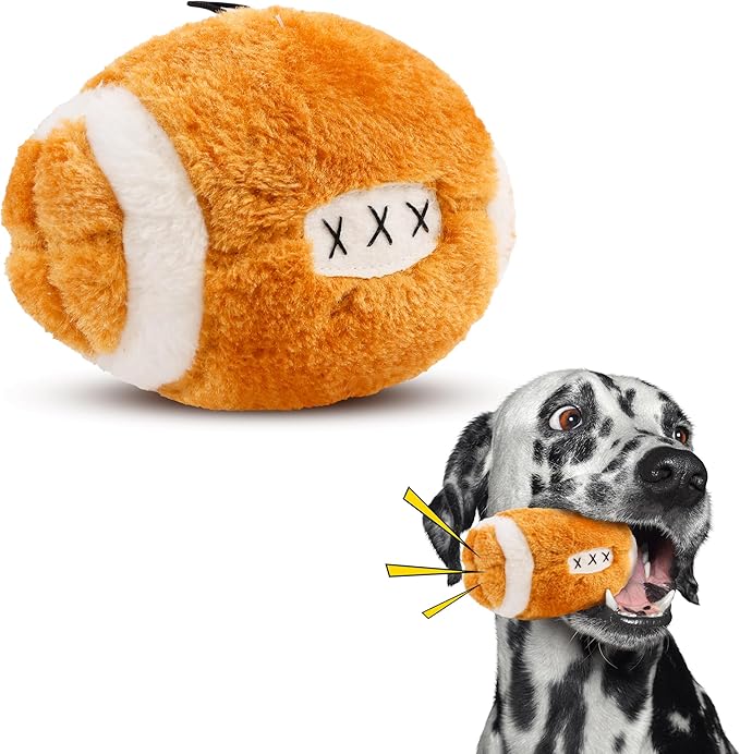 PLUSH FOOTBALL DOG TOY: With soft, plush fabric, the Plush Football Dog Toy is perfect for your dog to fetch, chase, and cuddle with